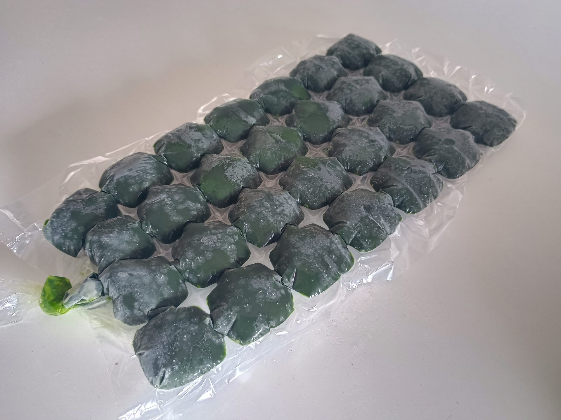 These compact cubes save space and keep the wheatgrass fresh for whenever it’s needed.